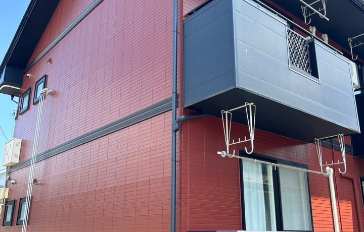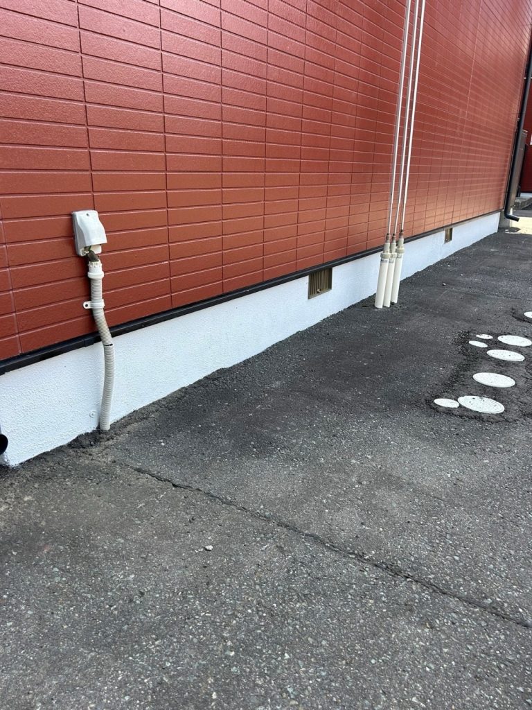 美寛建築です!今回アパートの雨樋工事、基礎防水工事させていただきました!