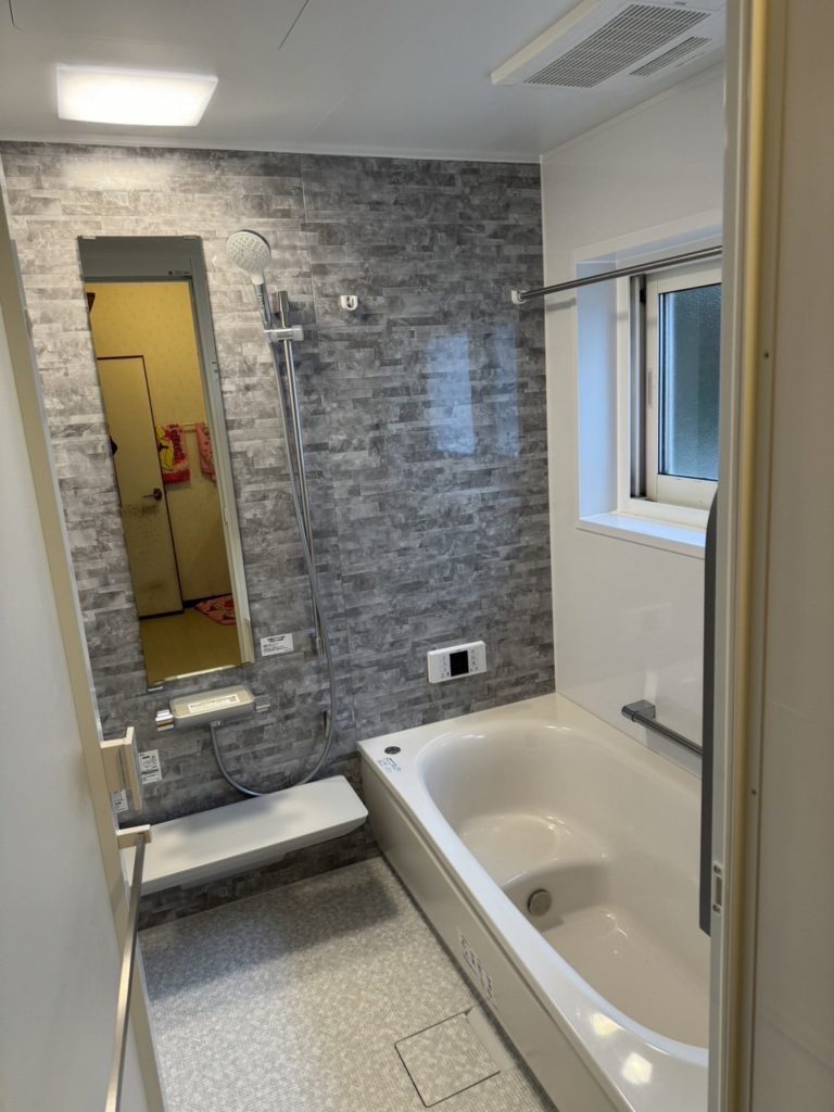 今にも崩れそうなタイルを撤去しパネルを取り付けました。