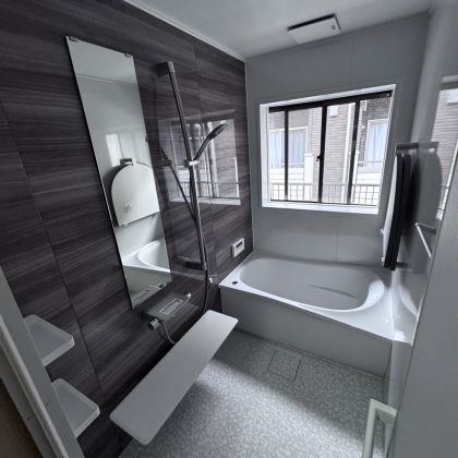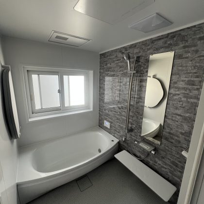 今回お風呂場の工事させていただきました!お風呂を解体し、ユニットバスに返させていただきました!断熱機能保温機能も上がりとりても満足いただきました!