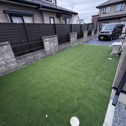 美寛建築です!今回お庭の人工芝を引きました!お庭でゆっくり探したり水捌けがいいので泥が飛ばずおすすめです!