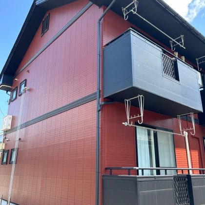 美寛建築です!今回アパートの雨樋工事、基礎防水工事させていただきました!